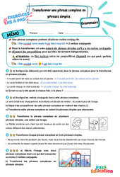 Exercices Pas à Pas avec mémo / leçon de grammaire pour travailler la compétence : Transformer une phrase complexe en phrases simples au : Primaire 5 .