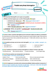 Exercices Pas à Pas avec mémo / leçon de grammaire pour travailler la compétence : Produire une phrase interrogative au : Primaire 5 .