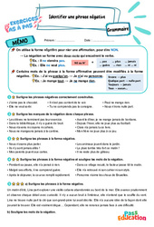 Exercices Pas à Pas avec mémo / leçon de grammaire pour travailler la compétence : Identifier une phrase négative au : Primaire 5 .