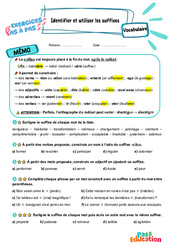 Exercices Pas à Pas avec mémo / leçon de vocabulaire pour travailler la compétence : Identifier et utiliser les suffixes au : Primaire 5 .