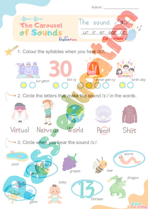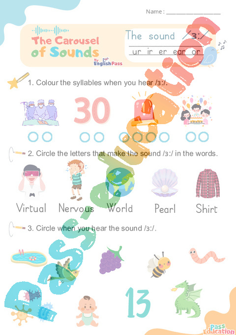 Carousel of Sounds : Maternelle 2 Primaire 1, 2, 3, 4, 5 – Vidéo interactive + Fiche sur le son : /ɜː/ ur ir er ear or.