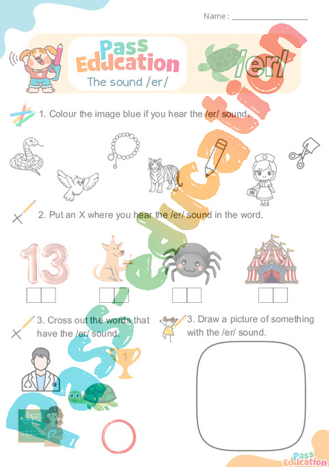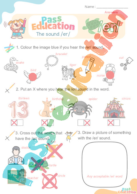 2. Circle the letters that make the sound /ɜː/ in the words.