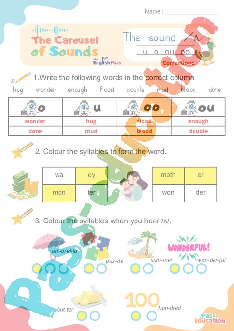 Carousel of Sounds : Maternelle 2 Primaire 1, 2, 3, 4, 5 – Vidéo interactive + Fiche sur le son : /ʌ/ u o ou oo.