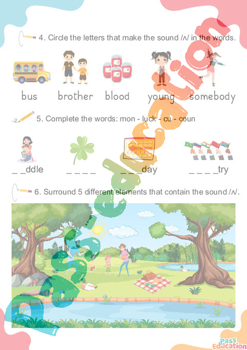 6. Surround 5 different elements that contain the sound /ʌ/.
