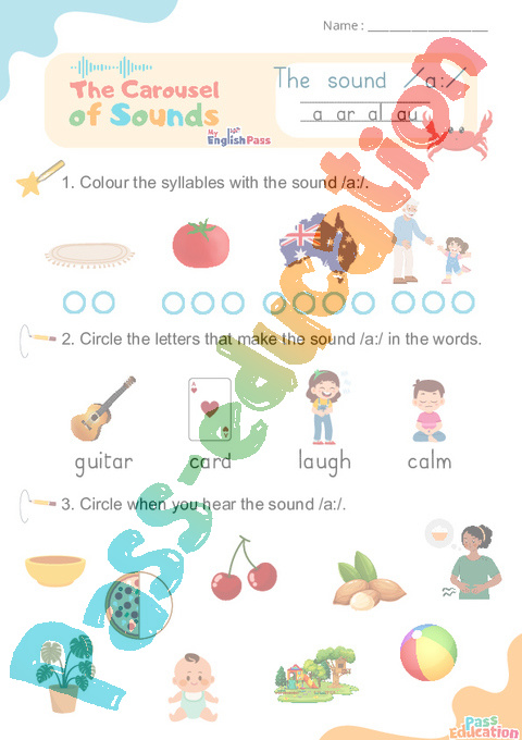 Carousel of Sounds : Maternelle 2 Primaire 1, 2, 3, 4, 5 – Vidéo interactive + Fiche sur le son : /a:/ a, ar, al, au.