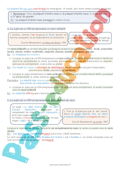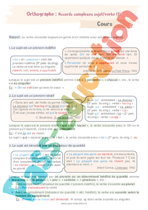 Cours pour la Secondaire 2 sur les accords complexes sujet/verbe (2).