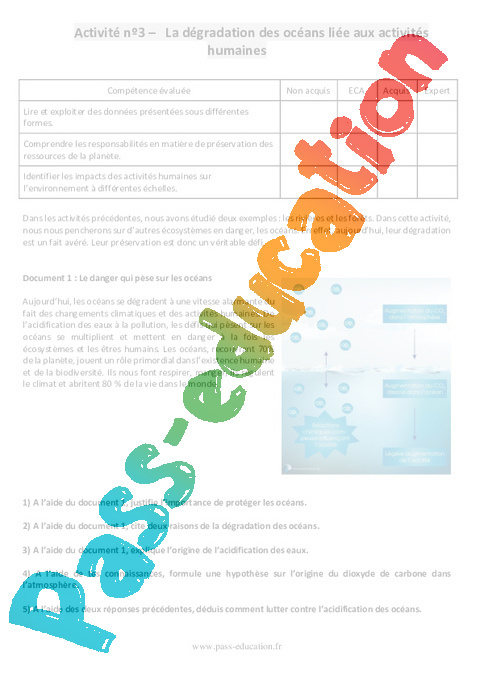 Activité 3 La dégradation des océans liée aux activités humaines Correction pdf