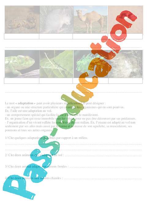 1/ Cite quelques adaptations possibles par rapport à un milieu.