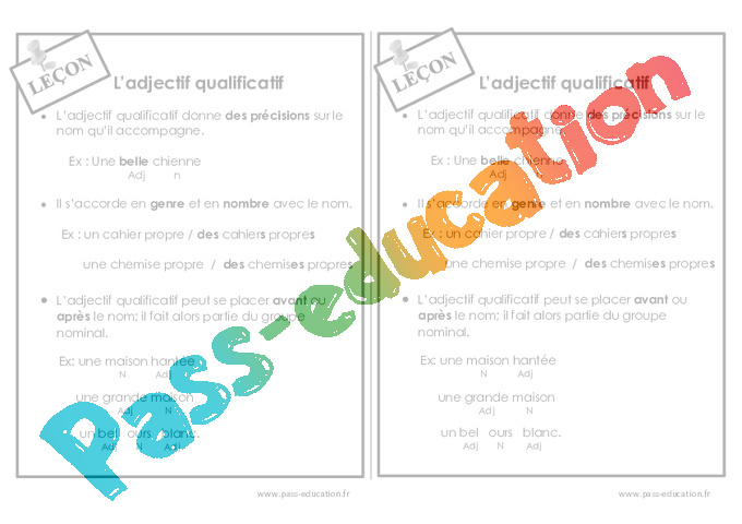 Adjectif qualificatif – Cours, Leçon : Primaire 3 – PDF à imprimer