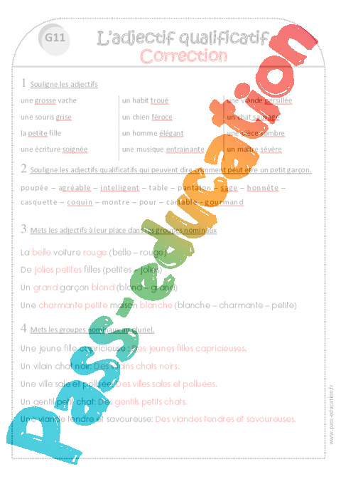 Correction – Adjectif qualificatif : Primaire 2 – Exercices à imprimer   pdf