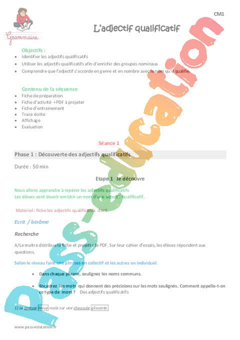 Adjectif qualificatif : Primaire 4 – Fiche de préparation pdf