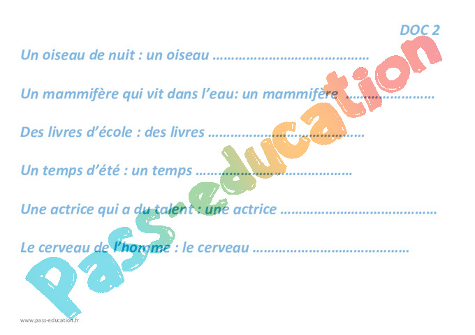 Matériel : fiche 1 les adjectifs qualificatifs doc 2
