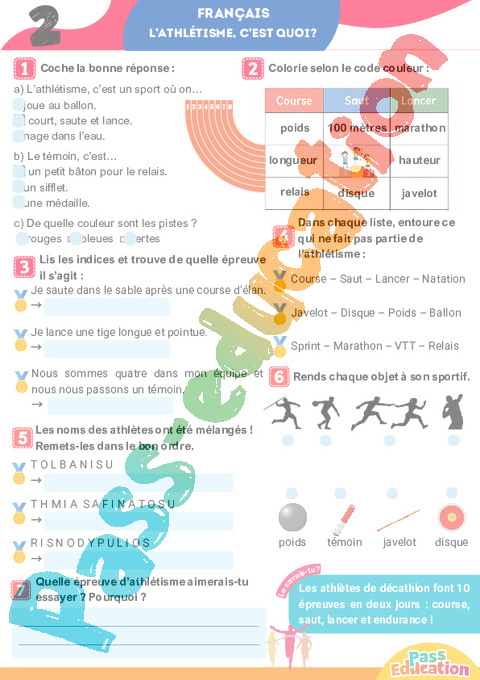 Correction Athlétisme – Cahier de vacances : Primaire 2, 3 pdf