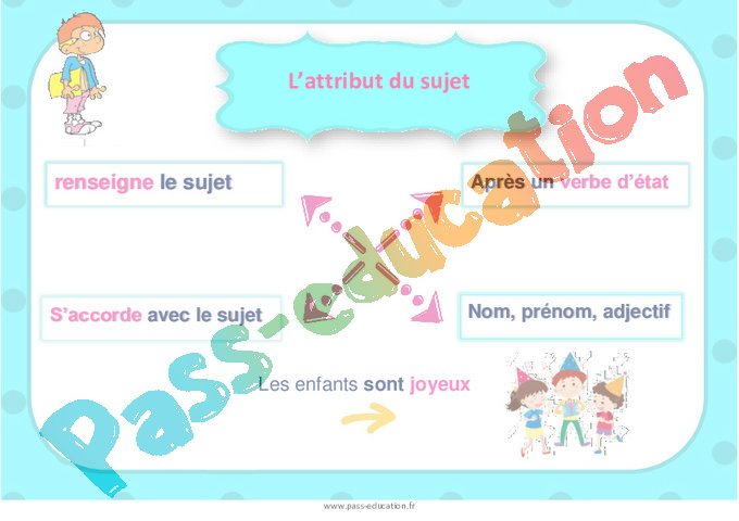 Affiche de classe sur « l’attribut du sujet » en Primaire 3, 4, 5