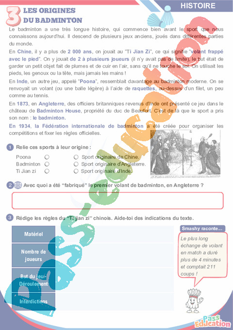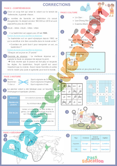 Correction Badminton – Fichier de vacances : Primaire 4, 5, 6 pdf