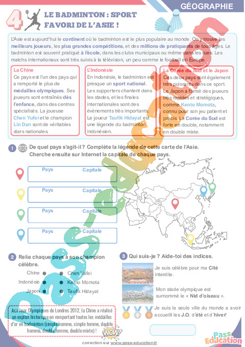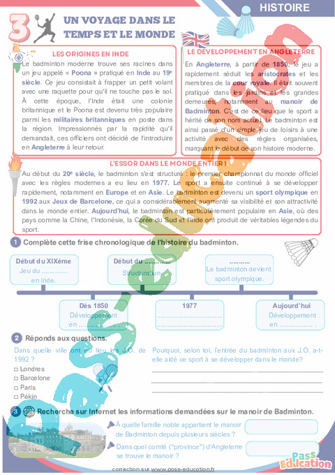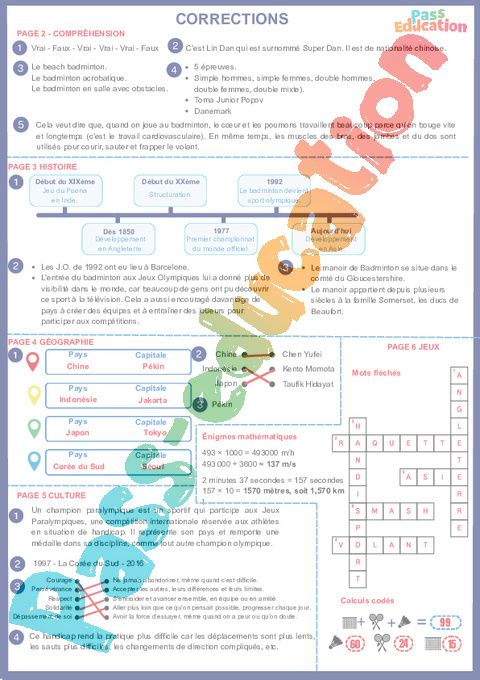 Correction Badminton – Cahier de vacances : Secondaire 1, 2, 3 pdf