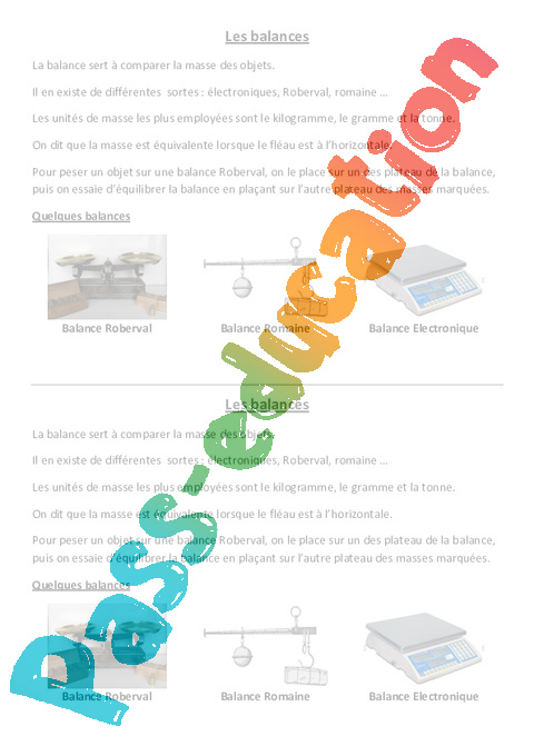 : Primaire 3, 4, 5 – Leviers et balances: Leçon Les balances pdf