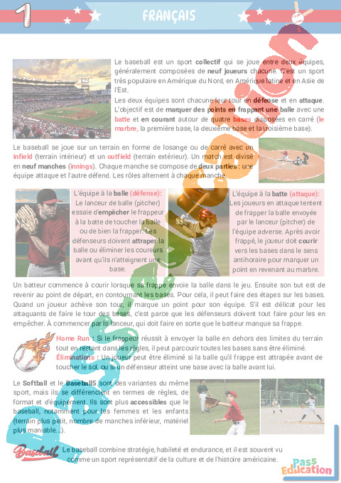 Baseball Fichier : Primaire 6, Secondaire 1 pdf