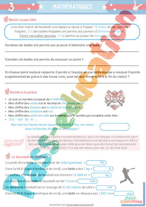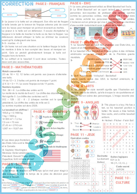 Correction Baseball Fichier : Primaire 6, Secondaire 1 pdf
