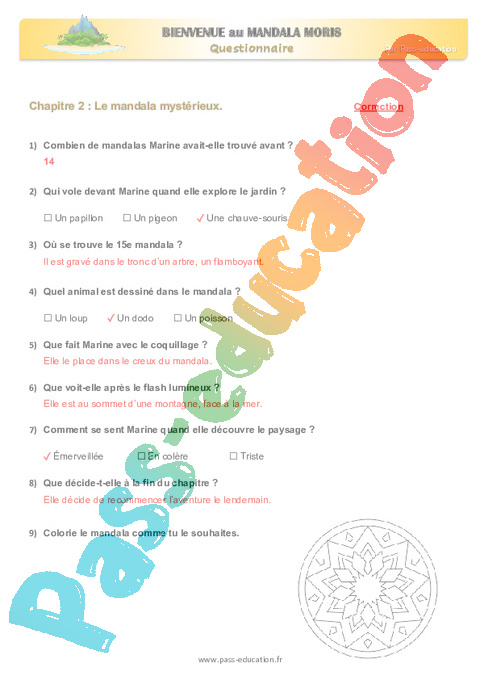 Correction Questionnaire Chapitre 2 Bienvenue au Mandala Moris : Primaire 2, 3 pdf