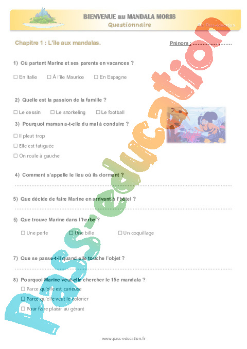 Questionnaire Chapitre 1 Bienvenue au Mandala Moris : Primaire 2, 3 pdf