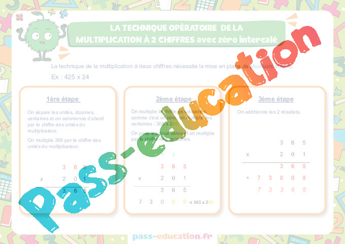 Technique de la multiplication à 2 chiffres avec zéro intercalé – affiche pdf