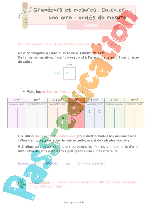 Leçon de grandeurs et Mesures sur : Calculer une aire – unités de mesure en Primaire 5 .
