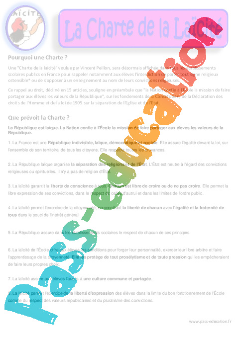 Charte de la Laïcité – Documents – Questionnaire – Correction pdf