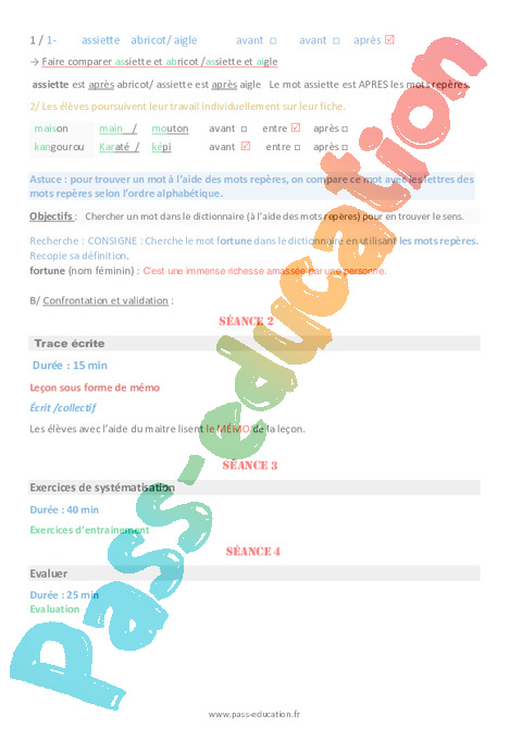 Leçon : Primaire 2 Chercher un mot dans le dictionnaire pdf