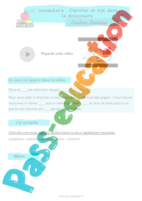 Chercher un mot dans le dictionnaire : Primaire 3 – Soutien scolaire Correction pdf