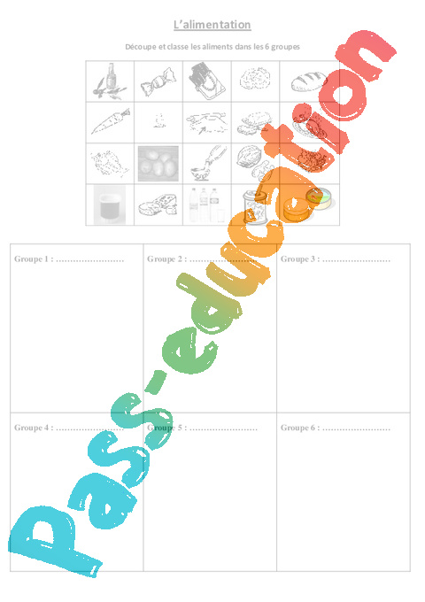 Découpe et classe les aliments dans les 6 groupes