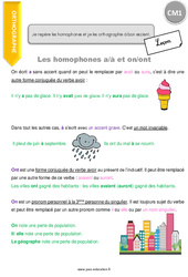 Leçon : Primaire 4 : Je repère les homophones et je les orthographie à bon escient Les homophones a/à et on/ont On écrit a sans accent quand on peut le remplacer par avait ou aura, c’est à dire une autre forme conjuguée du verbe avoir : Il n’y a pas de glace. Il n’y avait pas de glace. Il n’y aura pas de glace. Dans tout les autres cas, à s’écrit avec un accent grave. C’est un mot invariable. Il…