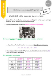 Leçon : Primaire 4 : Identifier un verbe conjugué à l’imparfait L’infinitif et le groupe des verbes • L’imparfait de l’indicatif est un temps du passé. Il exprime un fait ou une action qui a déjà eu lieu au moment où nous nous exprimons. • L’imparfait est souvent utilisé pour décrire une scène, un paysage….. Ex : Le vent tournait et il y avait dans l’air comme une odeur de trahison. • A l’imparfait de l’indicatif, tous les verbes prennent…