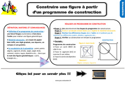 Leçon, trace écrite sur construire une figure à partir d’un programme de construction en Primaire 3 Construire une figure à partir d’un programme de construction DÉFINITION, MATERIEL ET CONNAISSANCES Définition d’un programme de construction: une liste d’étapes numérotées à faire dans l’ordre pour réaliser une figure géométrique. Matériel nécessaire : un crayon de papier bien taillé, une règle graduée, une équerre, un compas et une gomme. Le vocabulaire de la géométrie: point, points alignés, segment, droite, angle, angle droit, sommet,…