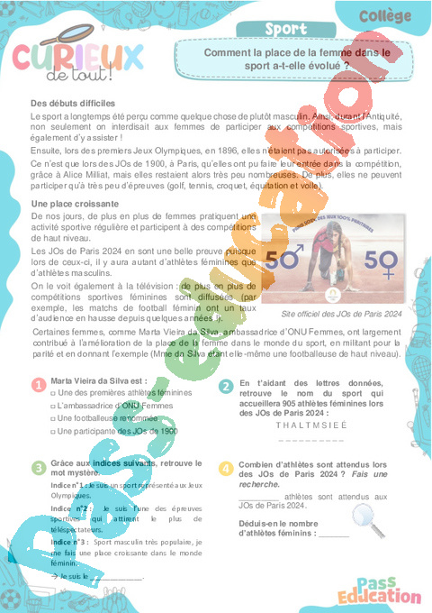 Place de la femme dans le sport a-t-elle évolué – 5e 4e 3 CDT pdf