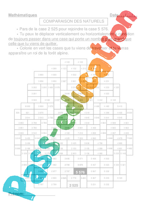 : Primaire 4, 5 – Exercices à imprimer – Nombres naturels – Comparaison