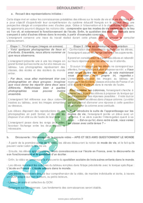 2 Script Comparer les modes de vies vivre en France, vivre ailleurs : Primaire 1 pdf