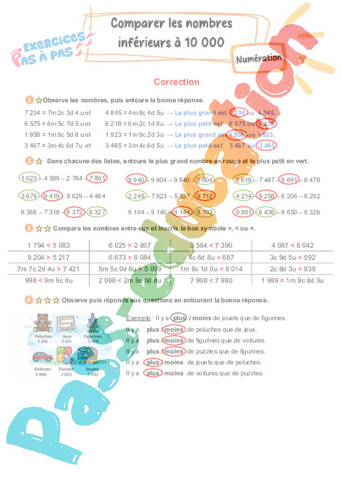 Correction Comparer les nombres inférieurs à 10 000 : Primaire 3 – Exercices Pas à Pas pdf