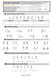 Bilan, évaluation à imprimer sur comparer et ranger des fractions simples en Primaire 5 Evaluation Numération : Comparer et ranger des fractions simples Compétences évaluées