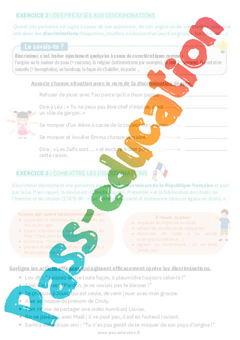 EXERCICE 3 : COMBATTRE LES DISCRIMINATIONS