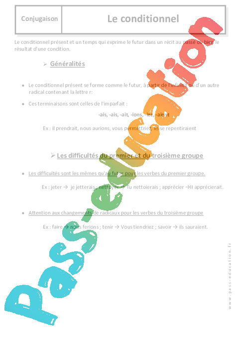 Ex : il prendrait, nous aurions, vous permettriez, ils se repentiraient