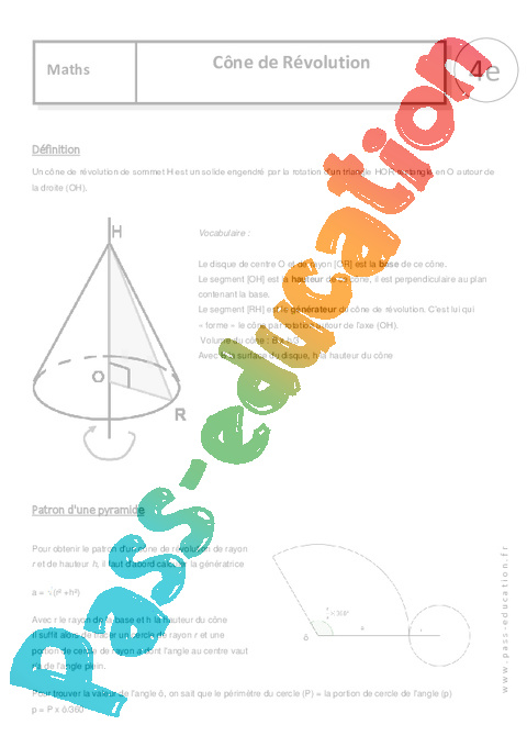 Cône de Révolution – Cours : Secondaire 2 – Géométrie