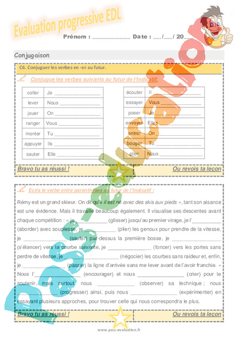 Conjuguer les verbes en -er au futur : Primaire 4 – Evaluation progressive rtf
