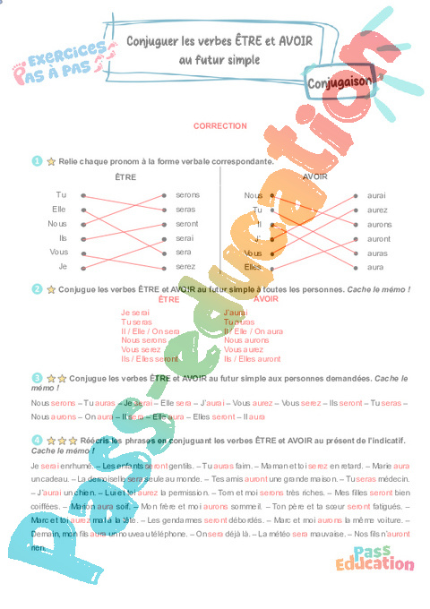 Correction Conjuguer les verbes être et avoir au futur simpla Primaire 3 – Exercices Pas à Pas rtf