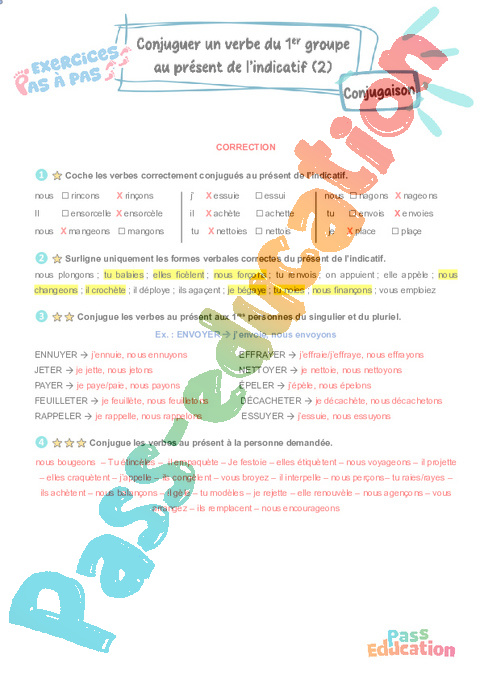 Conjuguer un verbe du 1er groupe au présent de l’indicatif (2) : Primaire 3 – Exercices Pas à Pas rtf