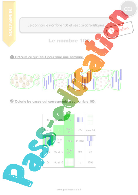 Je connais le nombre 100 et ses caractéristiques.: Primaire 2 -Correction pdf