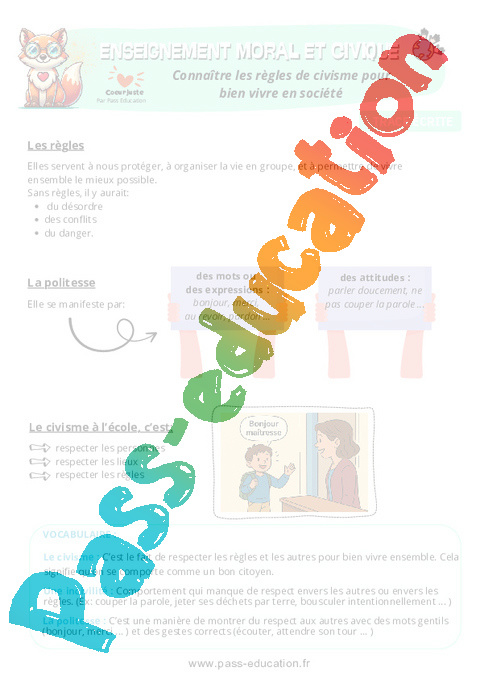 Leçon à imprimer – Connaître les règles de civisme pour bien vivre en société : Primaire 4 – EMC Education morale et civique.