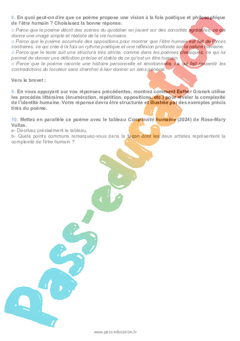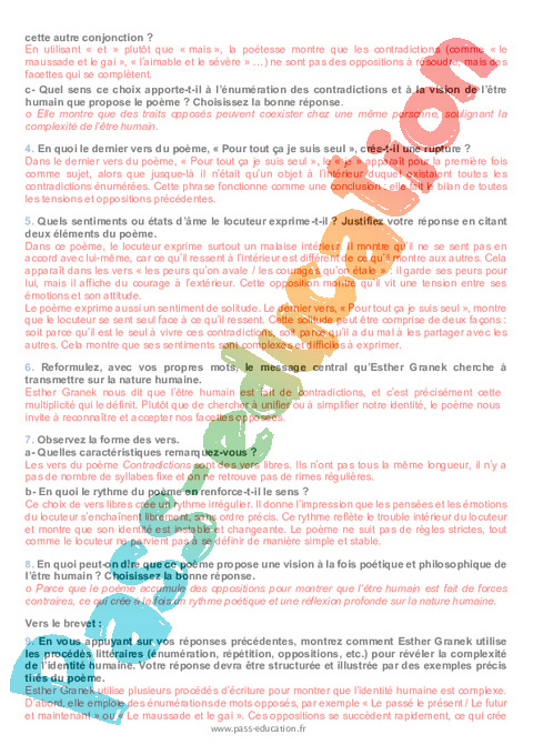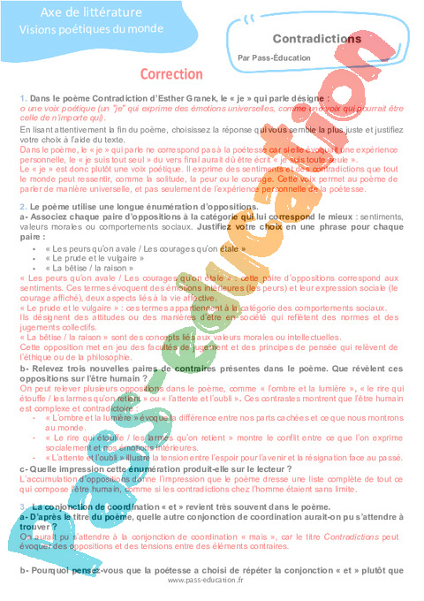 Correction Questionnaire Contradictions (Esther Granek) : Secondaire 3 pdf