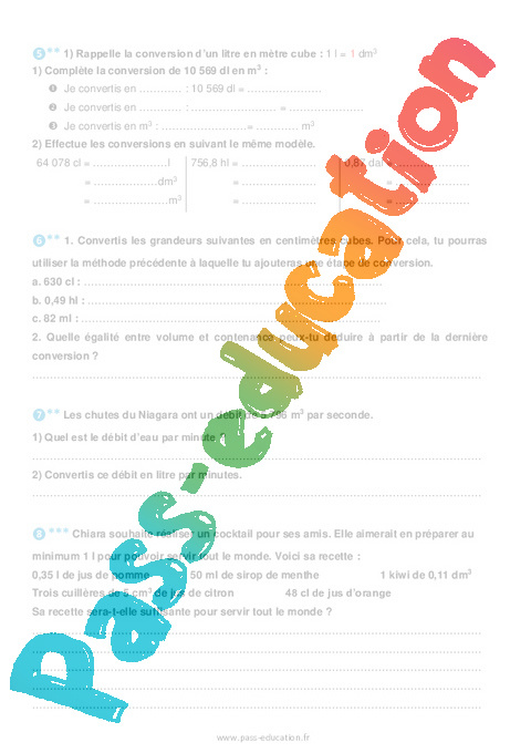 Exercices Correction : Secondaire 1 Convertir des unités de volume et de contenance pdf