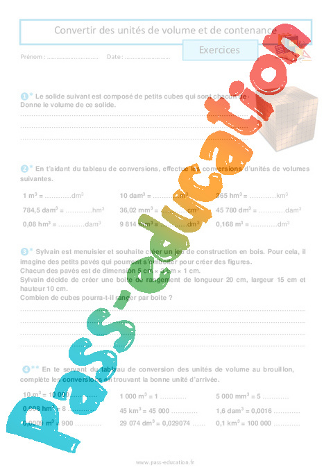 Exercices Convertir des unités de volume et de contenance : Secondaire 1 rtf
